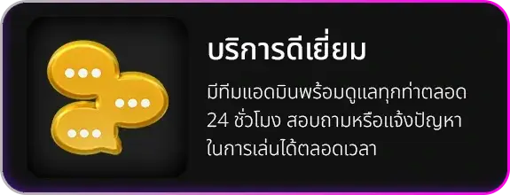 ที่สำคัญคือ เว็บไซต์เปิดให้บริการตลอด 24 ชั่วโมง มีทีมงานคอยให้ความช่วยเหลือตลอดเวลาผ่านช่องทางไลน์และเว็บแชท ไม่ว่าคุณจะมีปัญหาเรื่องการฝาก-ถอนเงิน หรือต้องการคำแนะนำในการเล่นเกม ทีมงานพร้อมดูแลคุณอย่างใกล้ชิด