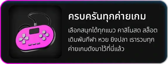 ตอบ : มีคาสิโนสด บาคาร่า สล็อต กีฬา มวย ไก่ชน หวย และเกมส์ออนไลน์ครบวงจร พร้อมระบบฝาก-ถอนอัตโนมัติตลอด 24 ชั่วโมง